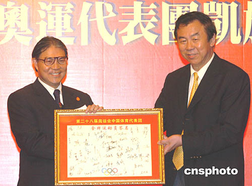 港体协暨奥委会会长霍震霆在致辞时说,国家队取得历史性的最好成绩,每块奖牌背后都包含着教练、选手及其他工作人员的汗水、努力。香港乒乓双打所夺得的银牌是香港回归后的第一面奥运奖牌。运动员的这些佳绩,除了令香港市民引以为傲外,亦希望能由此唤起香港市民对体育运动的关注及支持,并吸引更多有潜质的专业人士投身体育事业,为二OO九年的香港东亚运动会作出最佳准备。