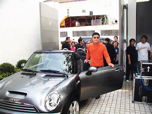 昨日大班歌迷在唱片公司门外等候,黎明乘坐开篷车进场,虽则天气炎热,但他早换季穿上橙色长袖衫,现场首播两首新歌的MV,并进行一个简单而隆重的爆气球仪式。昨日不见“东亚”老板林建岳到场,黎明解释是因为林生到新加坡倾洽公司上市事宜,所以要跟他分道扬镳。至于为何不找同公司的李嘉欣撑场,黎明就表示因为不想将新闻转到别的话题。说到为何选在九一一出碟,他表示没有特别意义,只是公司的意思。