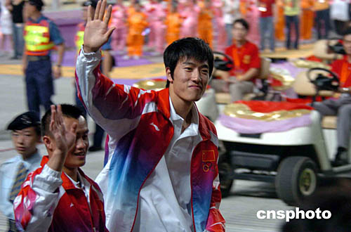而当震惊了世界的“黄色闪电”男子一百一十米栏冠军刘翔,唱着《好想好想》登台时,全场又一次掀起欢呼的高潮。一对中学女生一边兴奋地叫着刘翔的名字,一边挥着手中的小红旗。“我们来就是想见刘翔,他好靓仔呵,可不可以帮我们找他签个名?”她们手中拿着一张刘翔的照片,已经问过好几个汇演工作人员。“好想,好想……”这歌声会使许多人想问,眼下,刘翔最想实现的梦是什么,他的目标是不是已经锁定四年后在北京举行的奥运会金牌?