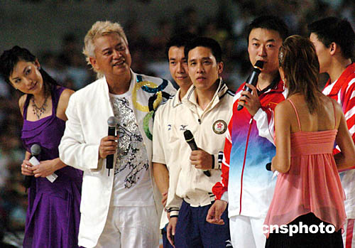 为欢迎国家奥运金牌代表团访港,九月七日香港举行“金牌精英大汇演”,国家奥运金牌运动员与香港艺员一起为香港市民表演节目。中新社记者:钱兴强