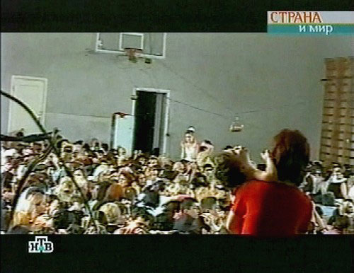 中新网9月8日电 综合报道,俄罗斯电视台7日播放了挟持学校人质的武装分子所拍摄的录相带。录相带显示,在血腥惨案发生之前,别斯兰校内武装分子和人质的情况。