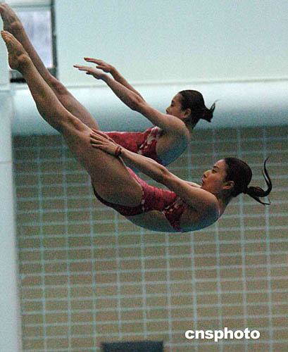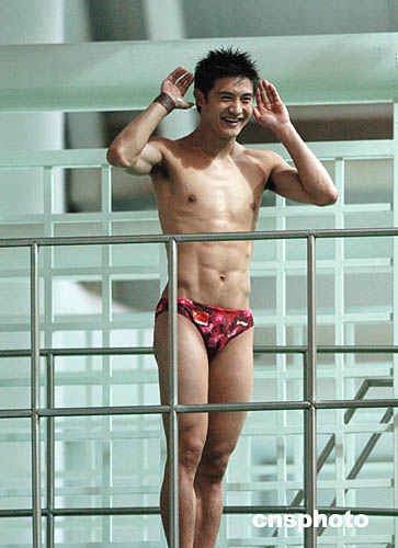 国家奥运金牌选手8日下午在九龙公园跳水示范表演。作者:洪少葵
