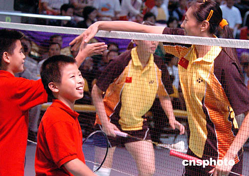 掀起一阵“追国宝风”的国家奥运金牌选手们,今日在访港行程最后一天,继续与全港市民近距离接触,为市民带来精彩的示范表演。下午,在湾仔伊利沙伯体育馆,数千市民以热情回馈一众羽毛球及乒乓球金牌得主,为他们的访港之行留下难忘的回忆。