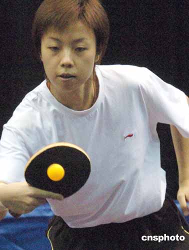 为欢迎国家奥运金牌代表团访港,九月八日香港举行“中国人的骄傲--奥运金牌精英显风采”奥运金牌羽毛球及乒乓球表演。图为奥运乒乓球女子单打冠军张怡宁示范表演。作者:钱兴强