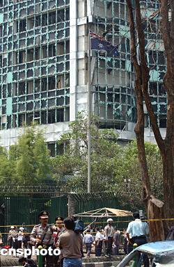 澳大利亚驻印尼大使馆和爆炸现场附近300米内的高层建筑都受到严重破坏,玻璃几乎全被震碎,附近的多辆汽车也被毁。澳使馆大门被炸出了一个大洞,大门外的围栏也被炸毁。