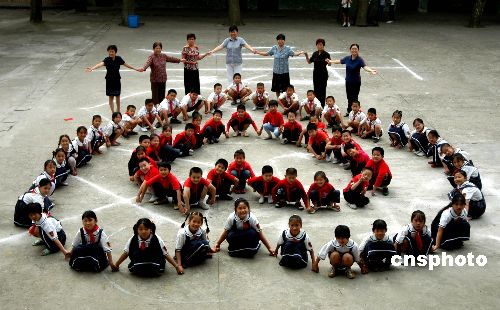 9月10日,南京上新河中心小学的60名学生在操场上自发手拉手组成一个“心”,以此来表示师生之间的“心心相应”,向教师节献上一份特殊而又有意义的礼物。作者:江南