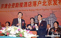 澳门励骏创建有限公司与北京华丽金宝房地产开发有限公司携手,在北京金宝街兴建星级豪华酒店——励骏酒店签约仪式九月十日举行。该酒店紧邻王府井商业区,设计水平超前,预计2007年底建成投入使用。京澳双方在北京首都合资兴建星级励骏酒店,这在北京尚属首例。中新社记者:张宇