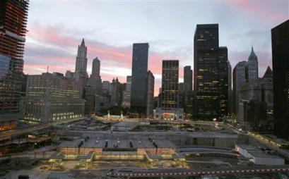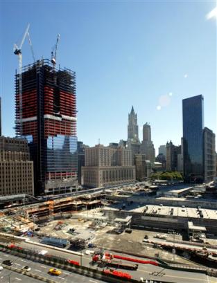 中新网9月11日电,今日是美国911恐怖袭击3周年纪念,美国各地以各种形式举行悼念活动。图为纪念活动前的世贸遗址。(固山)