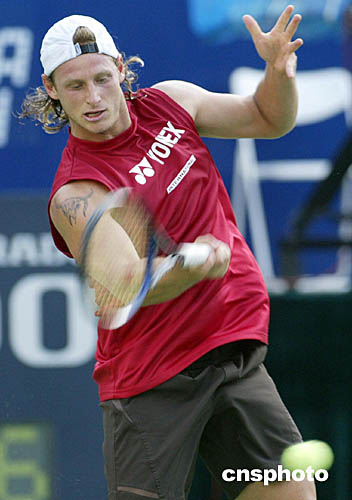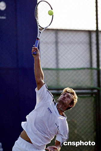 九月十二日,网球超级巨星费雷罗在北京网球中心的外场进行训练,为即将开始的中国网球公开赛正选赛作准备。