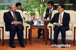 中国国家主席胡锦涛九月十四日下午在北京人民大会堂会见来访的阿尔巴尼亚总理纳诺。中新社记者:毛建军