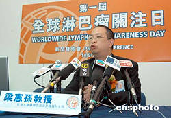 第一届全球淋巴瘤关注日新闻发布会9月14日在香港大学医学院大楼举行,香港大学医学院血液及肿瘤科主管梁宪孙教授表示,本港在91至01年十年期间,淋巴瘤个案增加超过两成,达到640宗。港大医学院及血癌基金,将15日订为全球淋巴瘤关注日。作者:邓庆乐