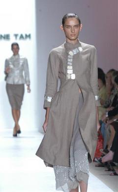 中新网9月15日电 据世界日报报道,曼哈顿13日举行2005年春装新展,知名华裔服装设计师谭燕玉,采用中国云南“苗族”服饰因素,将鲜度极高的色彩与中性色调相搭衬,配上大胆的亮银色,激起一股视觉震撼。