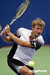 九月十五日,中国网球公开赛ATP男子单打比赛在北京网球中心的中央球场进行,在两次因雨暂停之后,西班牙选手费雷罗(见图)最终以二比零战胜美国选手基梅尔托博。中新社记者:盛佳鹏