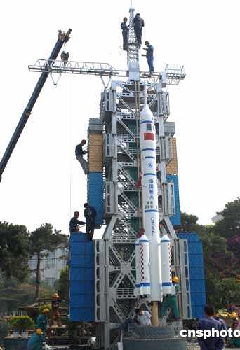 九月十六日,北京市园林局与北京城建集团职工忙着为国庆五十五周年天安门广场花坛布景。今年花坛总体格局以“万众一心”主花坛为主,东侧画卷式花坛由缀花日晷、神舟五号发射塔和高科技符号等组成,西侧以延安宝塔为主景,母亲河黄河将太行山、延安宝塔、壶口瀑布等贯穿于一体。中新社记者:邹宪