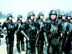 报道还称,维和民警们全身上下的“行头”,是为海地之行特别准备的。他们穿的高帮靴子是“防刺靴”,鞋底设有特殊的防护装置钢网,即便踩到钉子或者玻璃上也扎不透,而且还特别轻便、透气。在武装巡逻时,每位民警一定要装备一枝95冲锋枪或者88步枪、92手枪,另外还要带上匕首、电台、防弹背心、防弹头盔等,胡椒喷雾器、催泪弹也是必备品,每辆巡逻车都配备GPS卫星定位仪、夜视仪。每人身上总重量20多斤左右。而在执行防骚乱任务时,则需要穿上用高强度纤维材料特制的“刀枪不入”的盔甲服,戴上钢盔,拿上警棍、盾牌,装备总重量约在10多公斤左右。