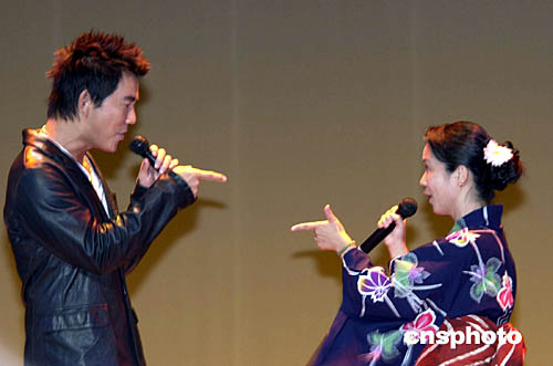 任贤齐与一位日本华语歌迷对唱其成名曲《对面的女孩看过来》。