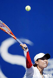 九月十八日,在北京网球中心中央球场进行的ITF女子单打决赛中,中国选手郑洁以二比零战胜队友李娜夺得冠军。图为郑洁在比赛中。中新社记者:盛佳鹏