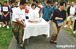 美西时间九月十八日,中国驻旧金山总领馆的外交官们带着大月饼到加州库柏蒂诺市参加当地侨社举办的第六届中秋游园会。作者:陈钢