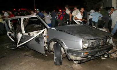 目击者说,在加沙城有一辆小汽车发生巨大爆炸。他们猜测这是以色列导弹“定点清除”的结果。