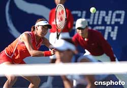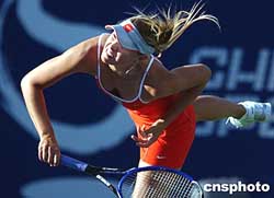 北京时间9月21日,中国网球公开赛的WTA赛事的女双比赛继续进行,结果在一场引人注目的女双比赛中,三号种子俄罗斯选手莎拉波娃和兹沃娜列娃组合爆大冷,以6-1,3-6和4-6输给了非种子选手日本选手藤原理香和浅越喜罗布组合,首轮就惨遭淘汰。中新社记者:武仲林