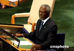 联合国秘书长安南在演讲中呼吁国际社会尊重法律,重返法治轨道。