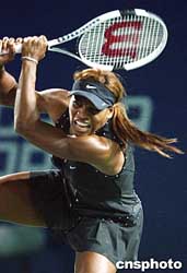 九月二十二日在北京举行的首届中国网球公开赛WTA巡回赛女单比赛中,美国名将小威廉姆斯苦战三盘战胜俄罗斯选手萨芬娜,成功晋级。作者:武仲林