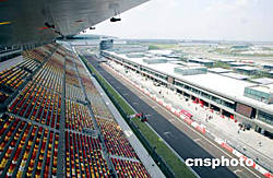 九月二十六日,F1中国大奖赛将在全新的上海国际赛车场举行决战。图为上海国际赛车场笔直开阔的发车直道。作者:潘索菲