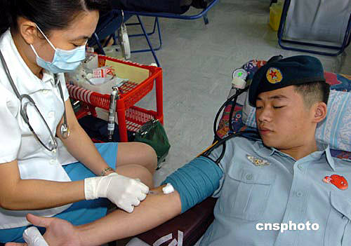 中新网9月24日电 解放军驻港部队四百官兵今天在驻军医院,参加由香港红十字会组织的无偿献血活动。他们每人献出四百五十毫升血液。这是驻港部队自一九九八年以来,第七次参加无偿献血活动。