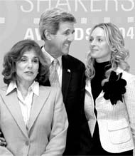 日前,她出席了纽约一个名为第七届全年“RedbookMothersand-Shakers”大奖,接受大会颁赠的奖项。同一场合,与现任美国总统布什竞逐下任美国总统的克里(图中)也有出席,还与这位巨星一同合照。(铁岩)