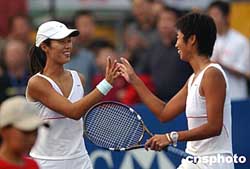 中新社北京九月二十四日电(记者高凯)首届中网公开赛女双比赛今天继续进行,雅典奥运会冠军,中国选手李婷/孙甜甜以二比零轻取另一对中国选手彭帅/谢彦泽,顺利晋级四强。