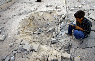 路透社电视新闻画面显示,到现场抢救的人把生还者从一处被炸毁的建筑内拉出来,其中有两名妇女和两名儿童。