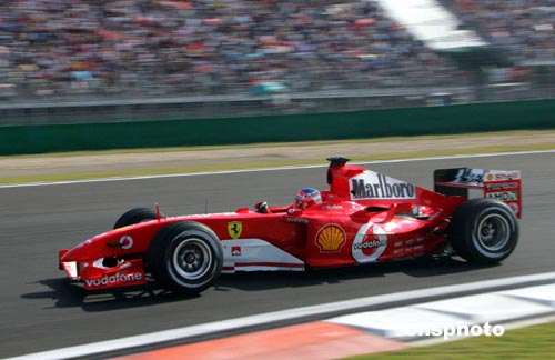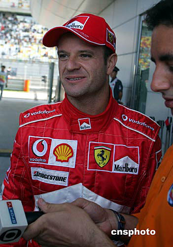 九月二十五日,F1中国大奖赛排位赛在上海国际赛场举行,法拉利车手巴里切罗以一分三四秒取得杆位。车王舒马赫在正式排位赛第一个弯道赛车滑出赛道,明天将在最后一位发车。作者:潘索菲