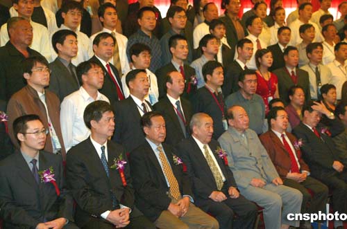 中国新闻社总编辑郭招金在会上发布2004年中国最具竞争力中小企业500强。中新社记者:满会乔