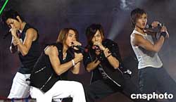 台湾当红组合ENERGY出席在重庆市奥体中心举行的“沸点空间九·二五演唱会”。ENERGY劲歌热舞让全场歌迷沸腾不已。作者:郭晋嘉