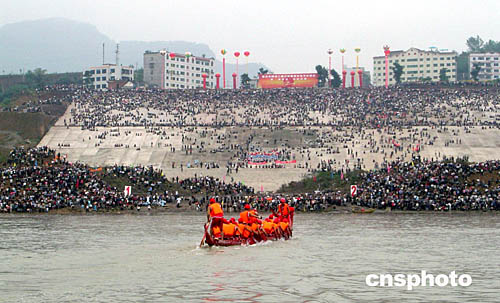 九月二十八日,三峡库区重庆市云阳县举行了“河牛杯”龙舟大赛。本次龙舟赛是三峡库区近二十年来最大规模的一次,共有十七支队伍参赛,吸收了近八万人观看。作者:周斌