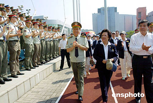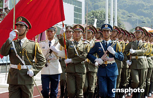 香港特首夫人董赵洪娉率各界人士于9月28日中秋节探访中国人民解放军驻港部队,与外交部驻港特派员杨文昌、驻军政委刘良凯等陪同下步入会场,受到热烈欢迎。