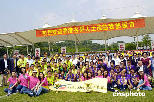 香港特首夫人董赵洪娉率各界人士于9月28日中秋节探访中国人民解放军驻港部队,在昂船洲军营与驻军足球队、香港明星足球队赛后合影留念。