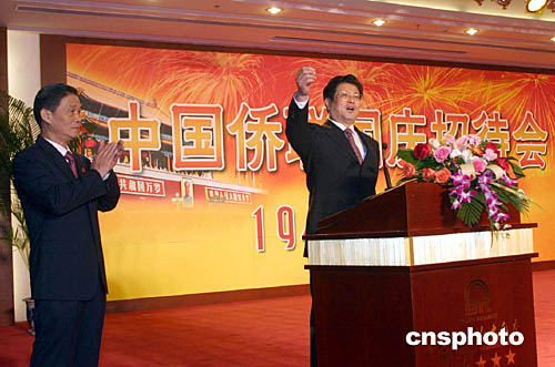 九月二十九日,中国侨联在北京世纪金源饭店举办庆祝中华人民共和国成立五十五周年招待会,欢迎来京参加国庆活动的海内外华侨华人。中新社记者:史利