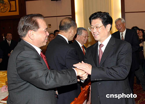 中共中央政治局委员、全国人大副委员长王兆国、全国政协副主席罗豪才会见来北京参加国庆五十五周年庆祝活动的海外华侨华人。