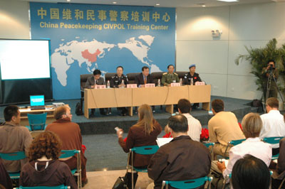 在介绍中国维和民事警察培训中心的有关情况时,谈钧说,2000年3月,公安部决定成立“中国维和民事警察培训中心”,担负维和警察的培训任务。这是中国维和警察培训工作正规化、基地化发展的重要标志。