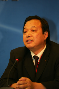 图:河南新乡造纸厂厂长张庆斌发表演讲