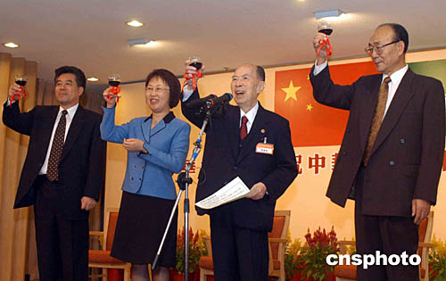 三十日,澳门中华总商会举行大型酒会庆祝中华人民共和国成立五十五周年,全国政协副主席、澳门中华总商会会长马万祺、澳门特别行政区代理行政长官陈丽敏司长、澳门中联办副主任王今翔、外交部驻澳门特派员万永祥等出席了酒会。作者:梁永强