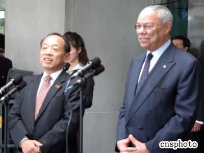 李肇星当天在美国国务院与鲍威尔进行了一个多小时的工作午餐会晤,双方就中美关系、台湾问题、朝核问题、苏丹达尔富尔、防扩散、国际反恐合作等问题交换了看法。