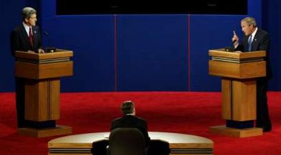 首场总统竞选辩论中,克里很精明地不放过任何机会,猛烈抨击布什在伊拉克战争中所犯的错误。他说,攻击美国的是本·拉登,是基地组织,不是伊拉克。在布什总统决定入侵伊拉克之前,伊拉克连反恐战争中心的边都沾不上。因为“九一一”入侵伊拉克,就像罗斯福因为珍珠港入侵墨西哥一样。