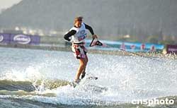 二○○四“明日星城”世界杯滑水赛九月三十日在江苏常熟尚湖风景区拉开帷幕。来自十六个国家和地区的五十四名选手将三天内将角逐男女跳跃、男女回旋、男女花样共六个单项的比赛。据悉,十月二日上午将进行各个单项的决赛。作者:蒋振江