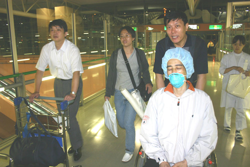 10月5日晚上8点半,救护车载着病人到了关西空港,赵大为领事和刘政领事亲自推着轮椅向登记口走去,中国东方航空公司大阪支店长黄青平得知这一情况后,立即免费把病人安排到头等舱,中国驻大阪总领事邱国洪在病人登机前通过电话向他表示了问候,9点钟飞机载着病人飞向了祖国。(记者丛中笑)