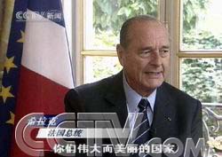 在希拉克总统启程前,中央电视台派出专访组前往法国对他进行了专访,当地时间9月28日上午,在法国总统府爱丽舍宫,希拉克总统接受了中央电视台的专访。