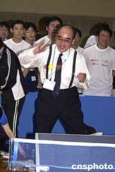 昔日威震八方的乒坛名将庄则栋,九日在应邀出席日本横滨首次举办的中日民间乒乓球大赛时,在开赛前走下场地,拿起久违的球拍,再度小试身手,令观者大饱眼福。作者:王健