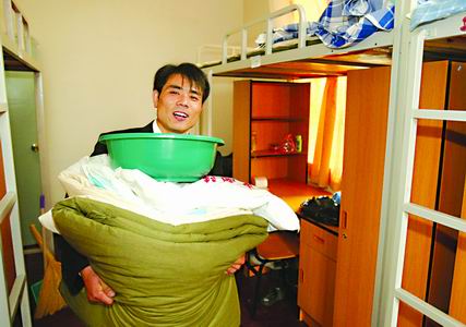 8号是中国社会科学院研究生院新生报到的日子,办完报到手续,郭荣庆领到了宿舍钥匙和自己的被褥、生活用品。宿舍里住了六个人,每人有一套书桌椅和柜子,光线很充足。郭荣庆兴奋地打量着新住处,说:“比我原来住的偏房可强多了。”(王秋实)