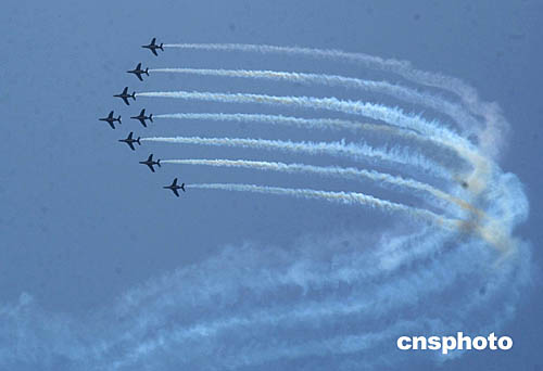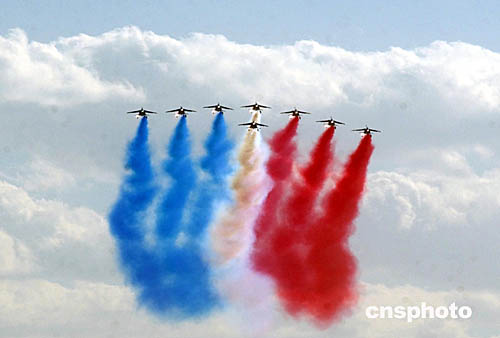 据中央电视台消息,由于天气的原因,"法兰西巡逻兵"飞行表演队在北京的特技飞行表演一直未能如期进行。经过中法双方有关部门的协调,"法兰西巡逻兵"飞行表演队今天下午将在南苑机场进行正式的飞行表演,届时官方电视台将对此现场直播。